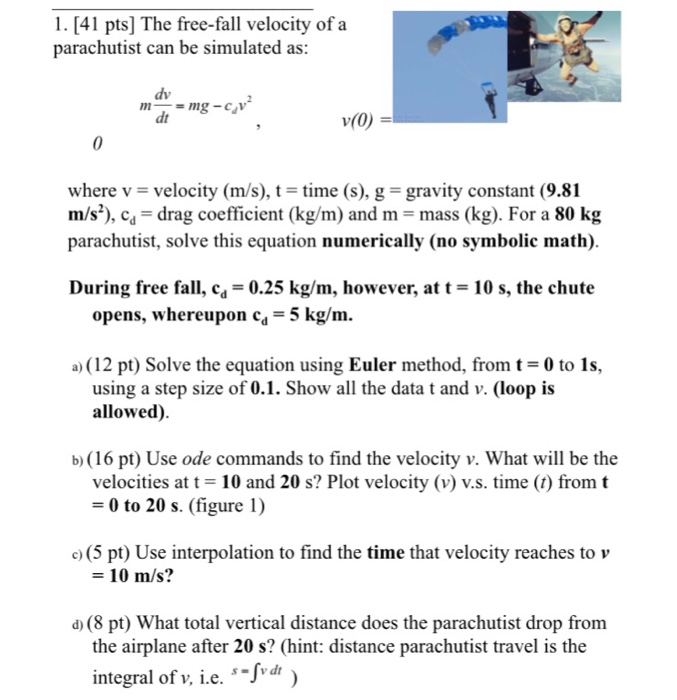 Solved 1 41 Pts The Free Fall Velocity Of A Parachutis Chegg Com