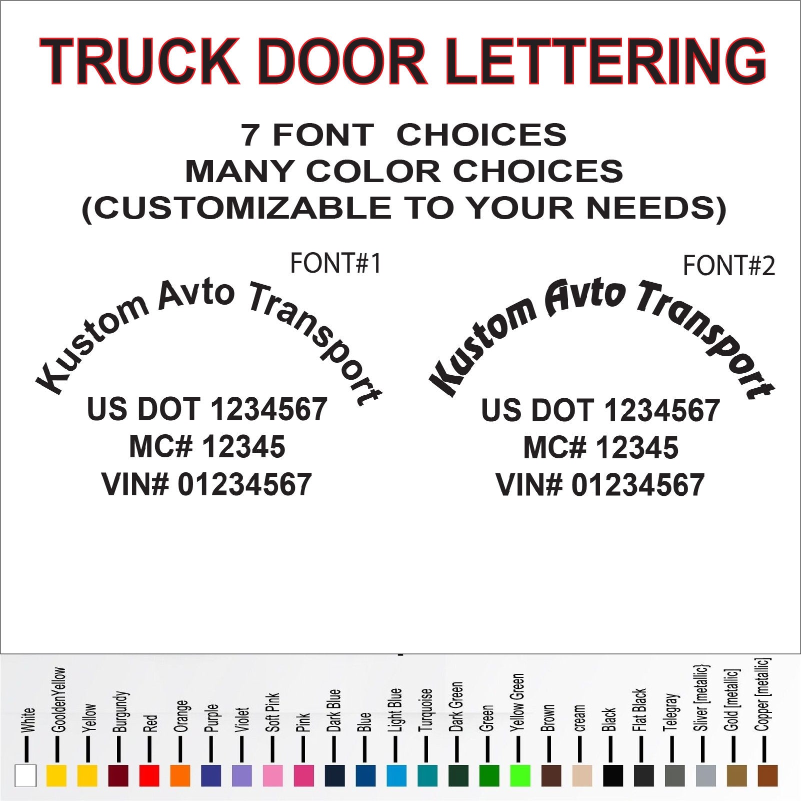 Custom Semi Truck Door Vinyl Lettering Sticker Decal Instant Proof Usdot Decals