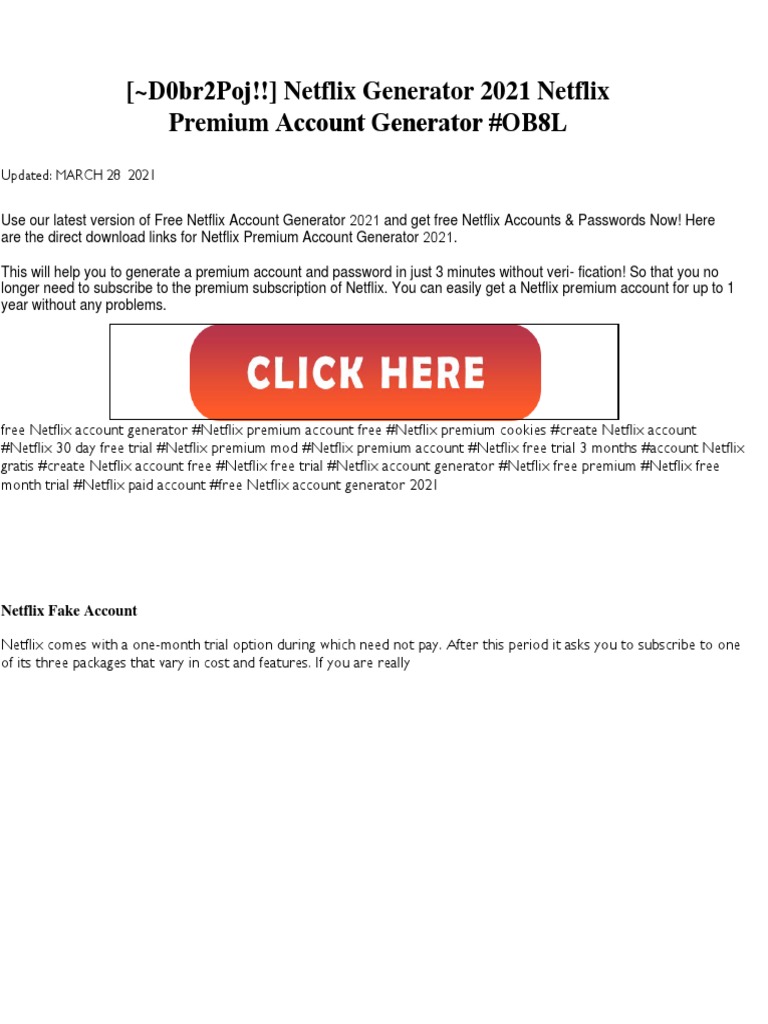 Use your card they wont charge you or generate one here for free. Free Netflix Account Generator. Due to high demand we require all users to verify their connection before we can reveal the account information.