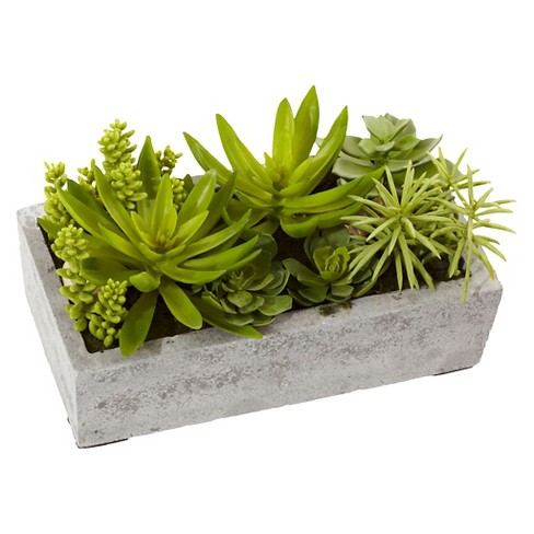 Nearly Natural Succulent Garden With Concrete Planter Target