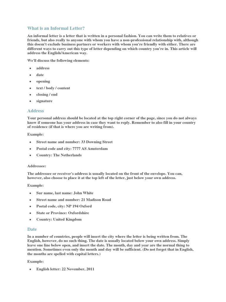 Informal letter address example. FAQs on Informal Letter. Formal letter format informal letters types topics letter writing examples. However its of importance to weigh your language in.