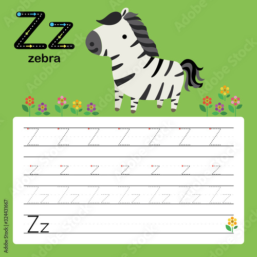 Alphabet Tracing Worksheet For Preschool And Kindergarten To Improve Basic Writing Skills Letter Z Zebra Vector Illustration Stock Vector Adobe Stock