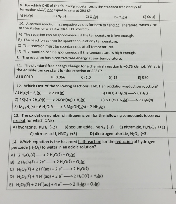 Chem 2 Std Free Energy Of Formation Vii
