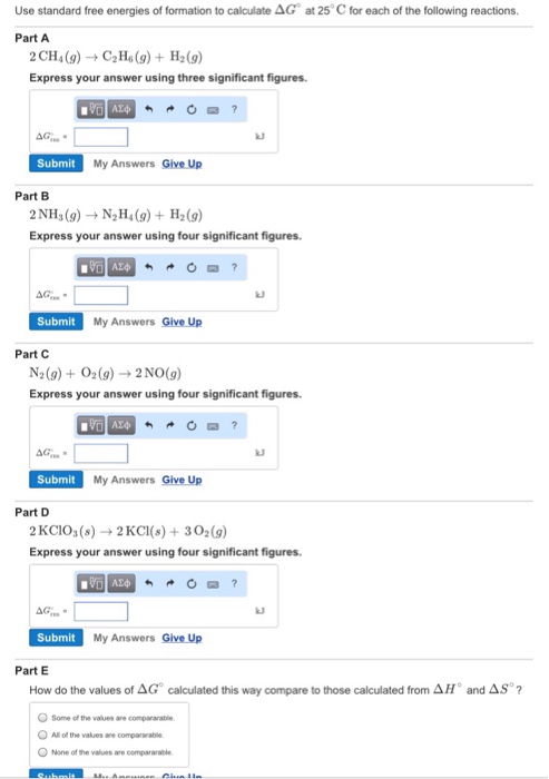 Use Standard Free Energies Of Formation To Calculate Delta G Degree At 25 Degree C For Each Of The Following Reactions Image Src Reaction3887565413590797930 Jpg Alt Reaction Caption Study Com