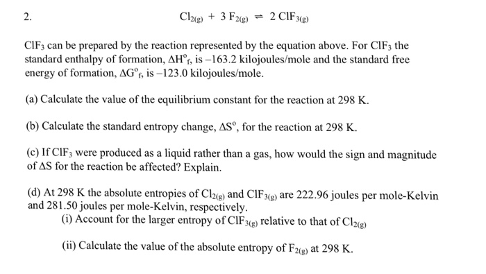 Solved 2 Cl2g3 F22 Cif3 Cif3 Can Be Prepared By The Reac Chegg Com