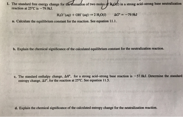 Combine the standard enthalpy of formation and the standard entropy of a substance to get its standard free energy of formation. The following equation relates the standard-state free energy of reaction with the free energy at any point in a given reaction not necessarily at standard-state conditions. Standard free energy change is defined as Change in free energ View the full answer Transcribed image text.