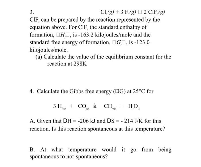 Solved 3 Cl G 3 F 8 O 2 Cif G Cif Can Be Prepar Chegg Com
