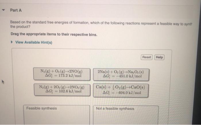 Solved Part A Based On The Standard Free Energies Of Form Chegg Com